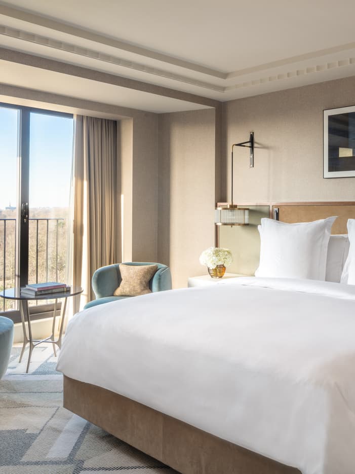 Our Premier Park-View Rooms offer a serene escape, with beautiful vistas of Hyde Park’s lush greenery or the verdant expanse of Green Park. Each room is a spacious haven of tranquillity, adorned with soothing colour palettes and elegant walnut-veneer panels that create a calming atmosphere. Immerse yourself in luxury and comfort, as you relax in a room designed to provide a peaceful retreat amidst the bustling city.
