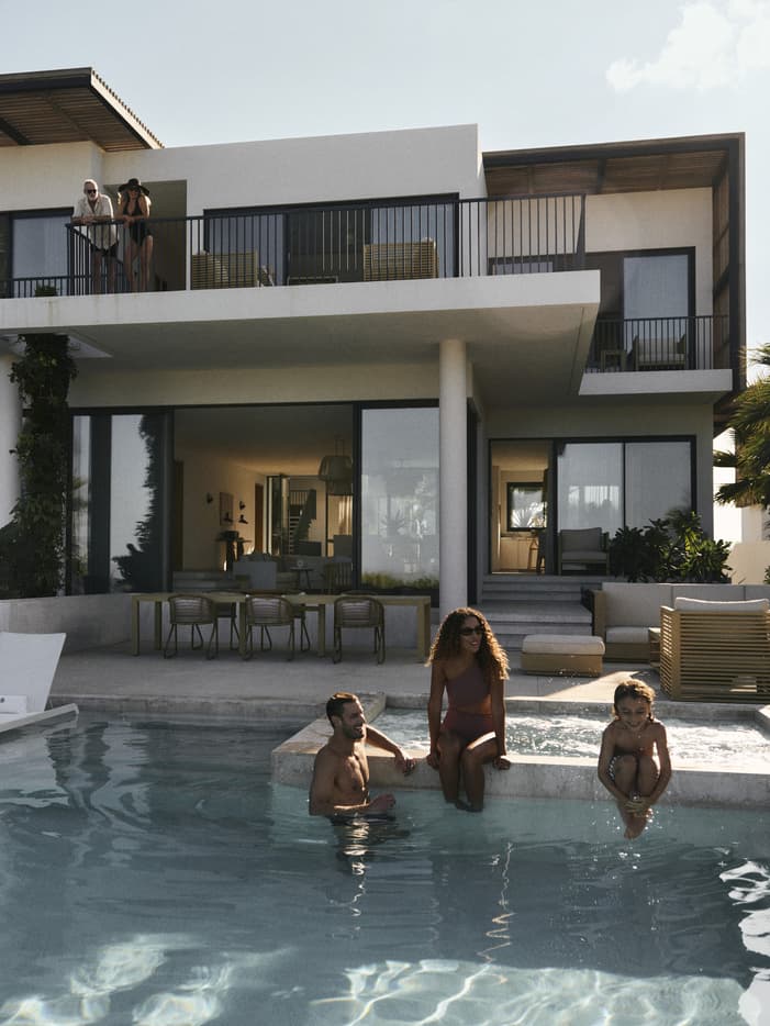 The expansive family pool surrounding Casa de Brasa features a sloped entry that mimics the shoreline, making it a favourite amongst our young guests. With plenty of shaded cabanas and ocean views, the family pool is the perfect place for the whole family to relax and refresh.