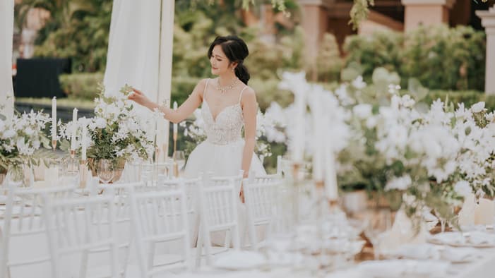 A lush garden on a verdant expanse set against the backdrop of our Hotel's stunning façade provides a majestic entrance. As you make your way down the aisle, a cascading fountain in the background enhances the serene atmosphere. Delight your guests with authentic Asian and Western delicacies before celebrating into the night with live entertainment and a custom wedding cake designed just for you.