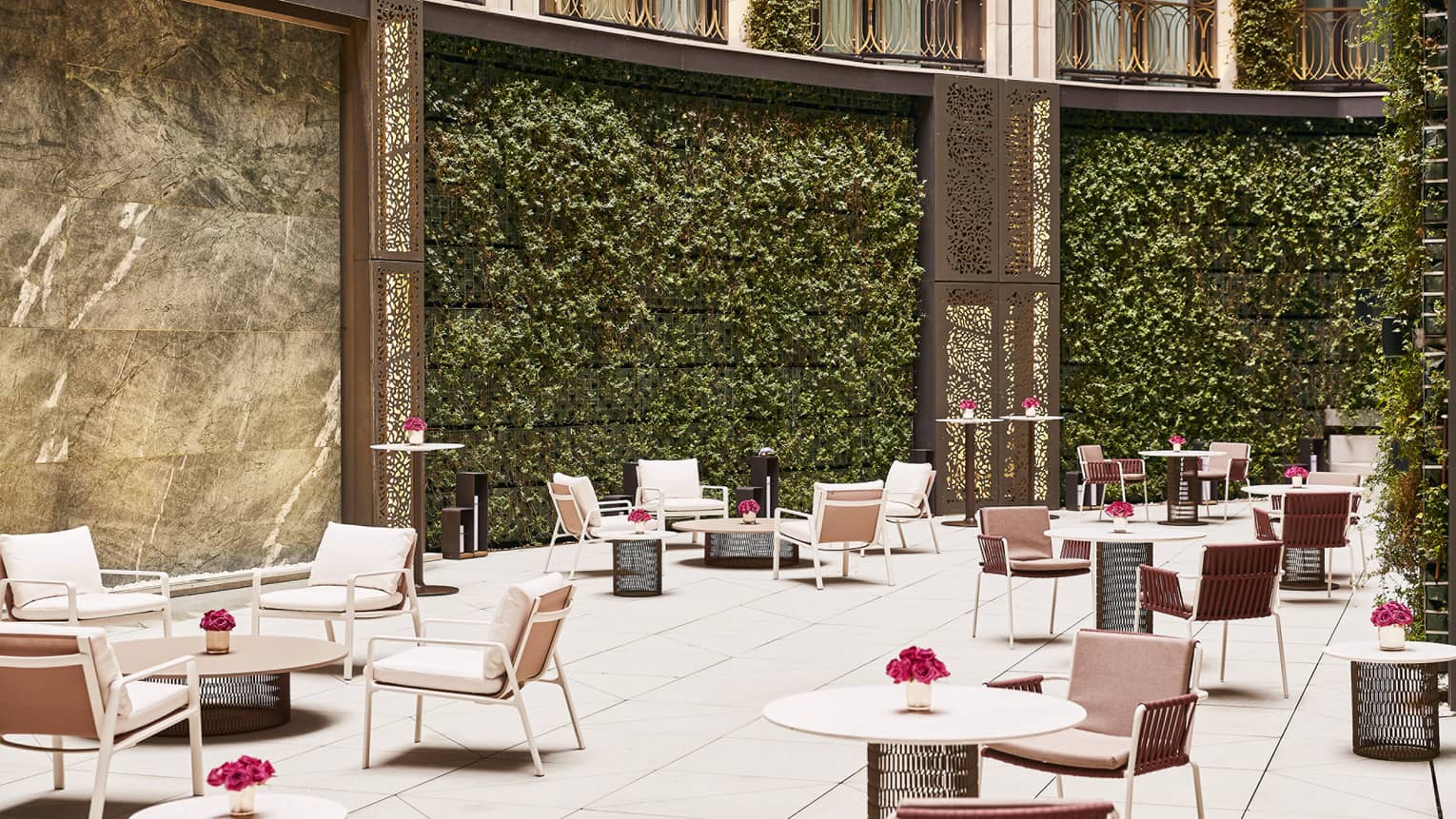 With a crescent-shaped design – curving along the edge of the oval Sol Ballroom – this glass-walled outdoor venue is perfect for coffee breaks, cocktails or desserts. Discreetly positioned at the centre of the building and open to the sky six floors above, this landscaped courtyard is accessible from both the ballroom and the surrounding hallway.