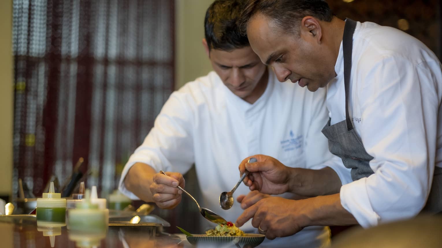 Sunset Water Villa with PoolDive from your bedroom straight into the infinity pool. Lounge on overwater hammocks. Bathe in sunset blues at the water’s edge living and dining pavilion. Descend the steps directly into the warm crystal lagoon, dotted with reef fish and corals.