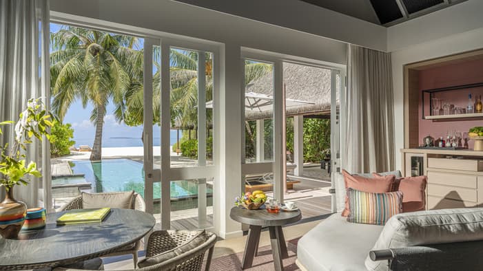 Take in stunning sunrises as you lounge in your overwater nets, private pool or from high in your sea-gazing loft. With a spacious bedroom, living area and steps leading to the crystal lagoon – where a new sea wall keeps currents at bay and enables safe swimming year-round – these east-facing villas immerse you in sweeping serenity.