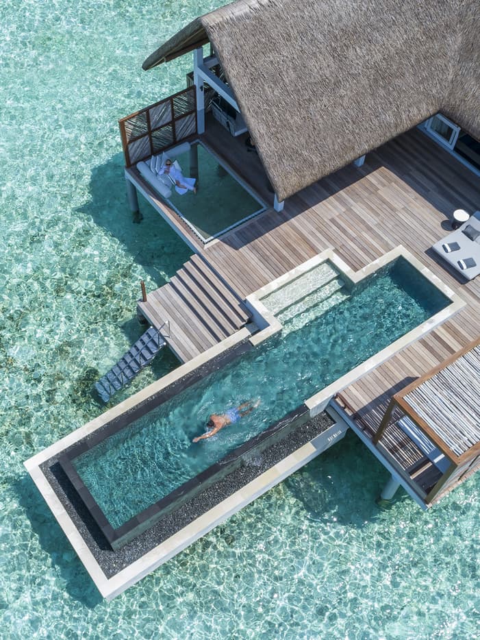 Take in stunning sunrises as you lounge in your overwater nets, private pool or from high in your sea-gazing loft. With a spacious bedroom, living area and steps leading to the crystal lagoon – where a new sea wall keeps currents at bay and enables safe swimming year-round – these east-facing villas immerse you in sweeping serenity.