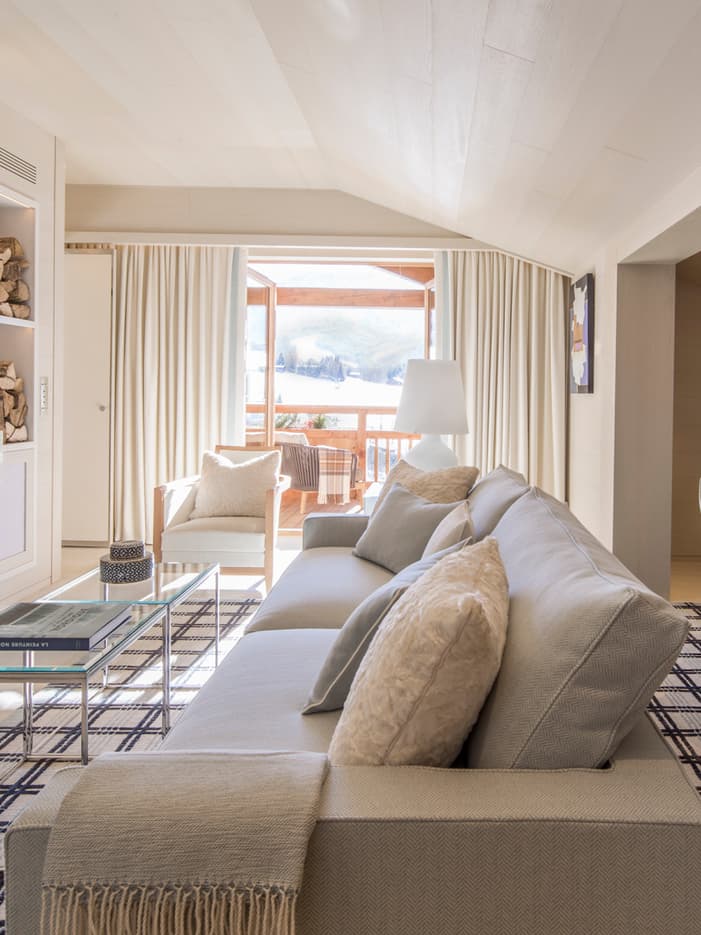 A rooftop escape with modern alpine styling and floor-to-ceiling windows make for a chic mountain retreat. After a day outdoors, relax in the comfortable living room or enjoy the view from your valley-view terrace.