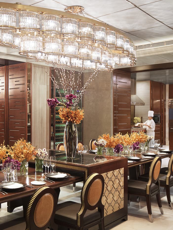 The FoyerWelcome your guests in The Foyer, an inviting space perfectly suited for cocktail hour, with Italian marble flooring, Edelman tufted-leather panelling, custom Czech crystal chandeliers and a wall of windows.
