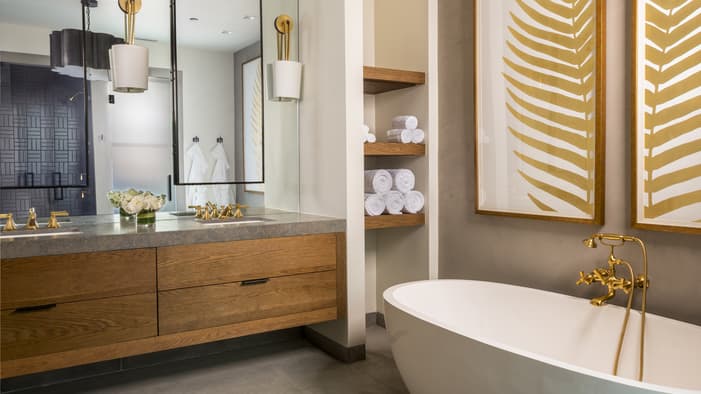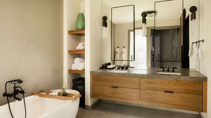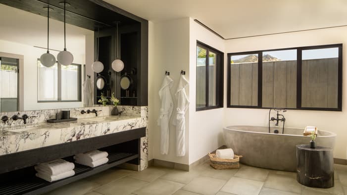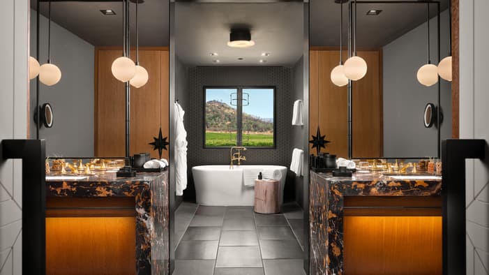 Unwind in Four Seasons comfort, inspired by the timeless beauty of California’s premier wine region. Interiors feature farmhouse-chic style that is rustic yet elegant, simple yet inspired. Beautiful lighting warms a neutral palette featuring the finest textiles and thoughtful details, such as custom live-edge wooden headboards.