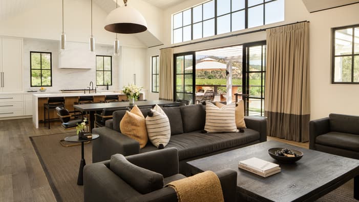 Our multi-bedroom homes are the perfect wine country retreat for families or those looking for more privacy. Enjoy expansive indoor and outdoor living spaces, sweeping vineyard and mountain views, and farmhouse-chic décor in two-bedroom, three-bedroom and four-bedroom villas.