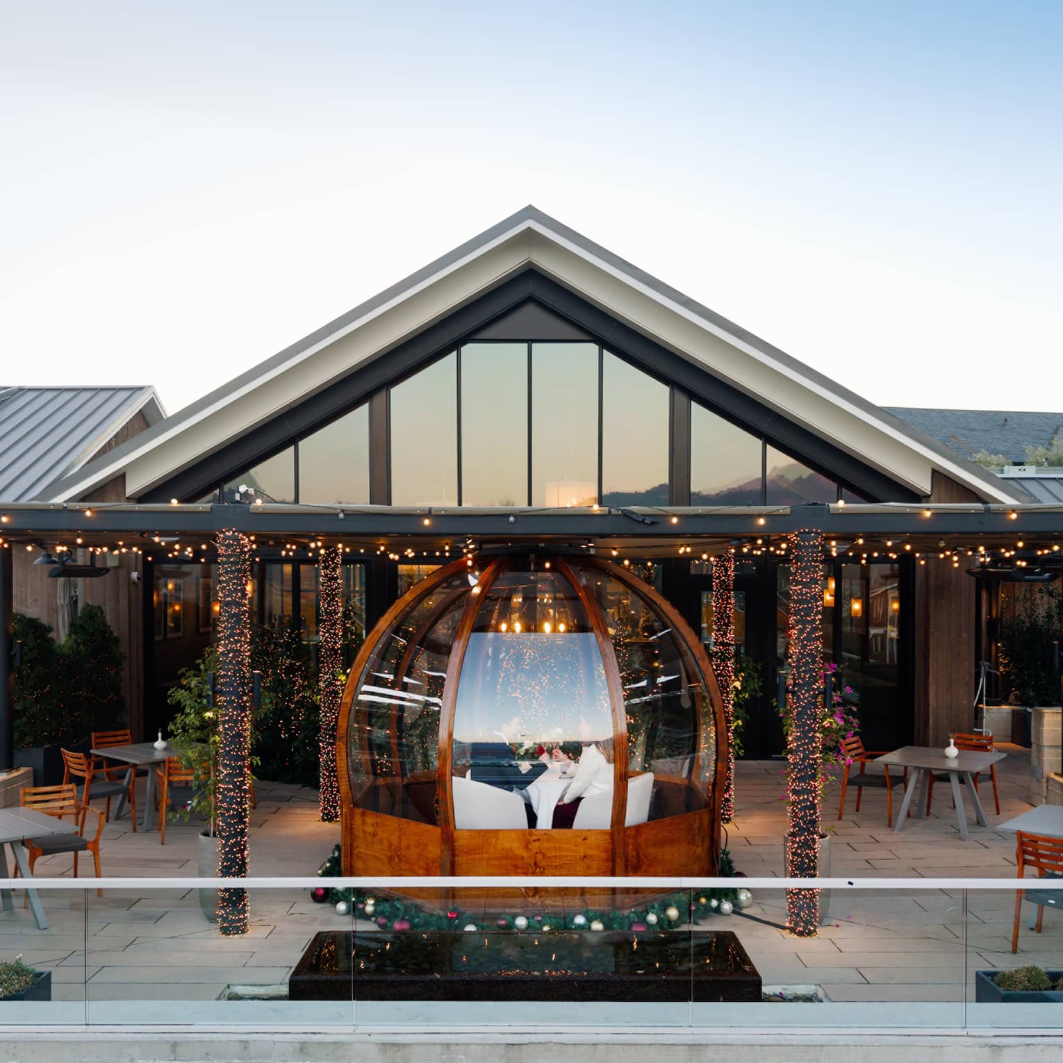 Experience wine country charm and cozy up by the fireplace in our transformed TRUSS Winter Chalets. Surrounded by vineyard views, each chalet pairs the beauty of Napa Valley with our signature winter chalet menu, featuring shareable small plates and classic s’mores. No rental fee. À la carte menu available.