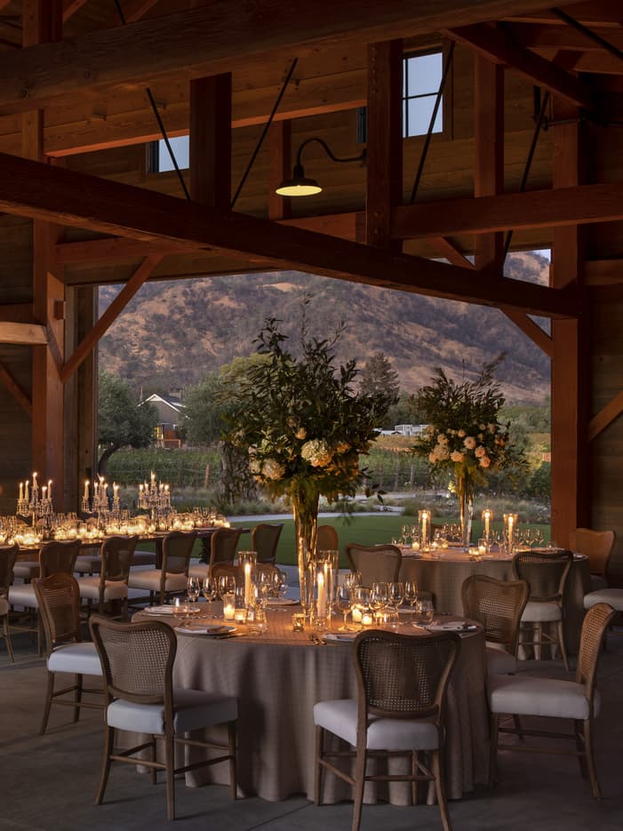 Select from a variety of inspired vineyard venues under the Californian sunshine and the Mayacamas Mountains in the distance. Our premier event space, the Vineyard Barn, holds pride of place in the center of the vineyard. High ceilings and large barn doors create a rustic, chic atmosphere filled with natural light and the adjacent lawn makes indoor and outdoor event experiences a delightful possibility. The Lakeside Lawn, Lakeside Terrace and Silverado Terrace are perfect for wedding receptions and intimate ceremonies.