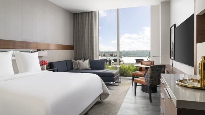 Explore the heart of Nashville from Four Seasons Hotel Nashville, perfectly situated for discovering the city’s thriving cultural scene. Just a short walk from major sports venues, guests can catch a hockey game at Bridgestone Arena or a football match at Nissan Stadium. Dive into the local music scene with a personalized songwriter round experience, or visit the iconic Gibson Garage for a hands-on tour of legendary guitars and music history. Our expansive seventh-level terrace offers a resort-like escape with an infinity-edge pool, hot tub, and easy access to the Spa and Fitness Centre. Whether you're here for music, sports, or relaxation, our concierge team is ready to craft an unforgettable Nashville experience.