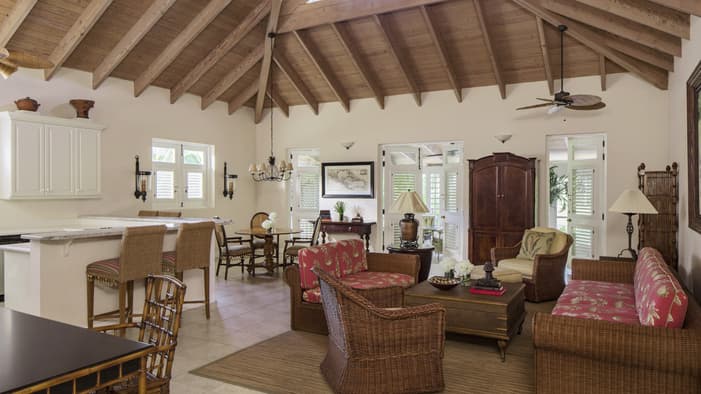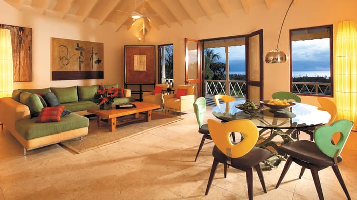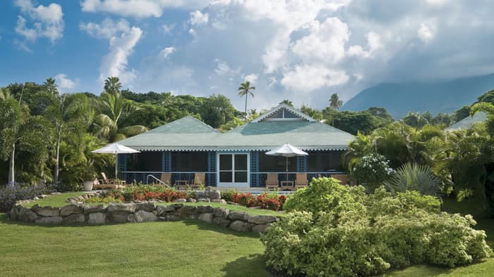 Stunning sunset views and higher elevations up Nevis Peak, these two-to-four-bedroom villas reflect the charm of a traditional island home with a mix of modern and classic decor – just a seven-minute golf cart ride to the beach.