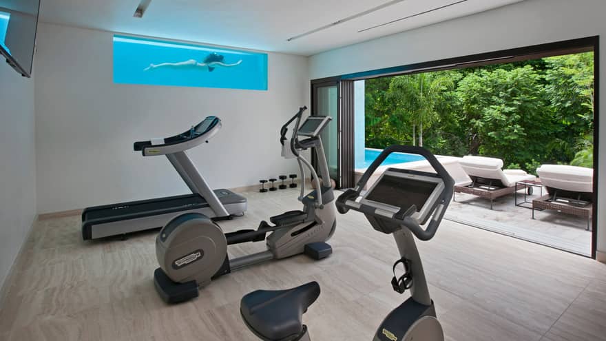 Wellness Made Easy Wellness Made Easy- In addition to a fully equipped, modern kitchen and extensive indoor and outdoor living space, this villa features a private wellness sanctuary that includes a couple’s massage room and a fully equipped fitness centre with stationary bike, elliptical, treadmill, free weights and cable TV.