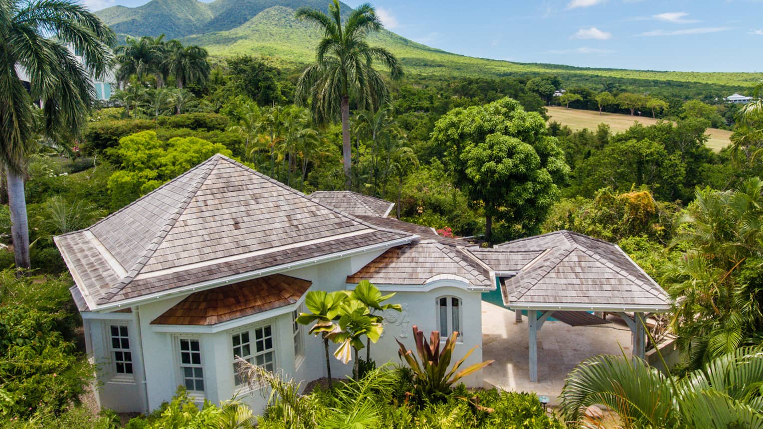 Breathtaking views of the Caribbean Sea, golf course and Nevis Peak