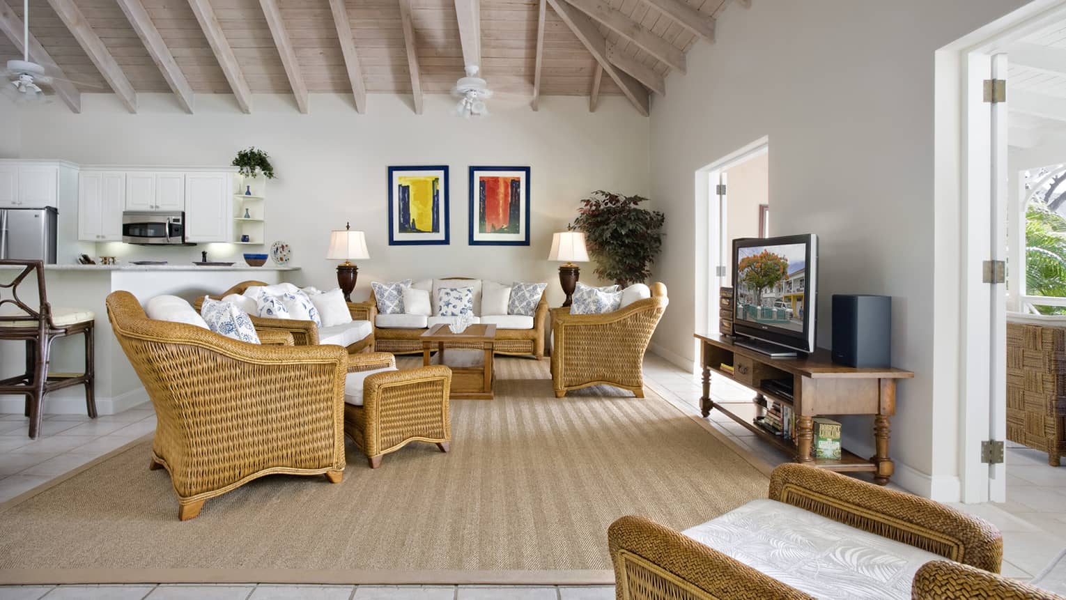 Take in breathtaking views of the Nevis Peak from your balcony or admire local artwork on the walls.