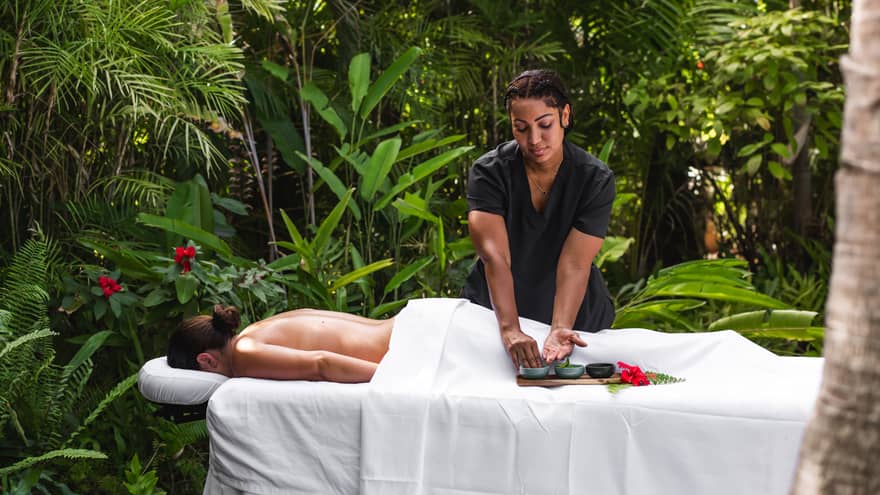 Yes, the Resort offers indulgent couples’ spa experiences. The Rainforest Massage is a signature treatment where partners can relax side by side with a soothing combination of techniques. The Spa offers romantic spa rituals that include aromatic baths, massages and body scrubs tailored to rejuvenate both body and soul. The Spa Under the Stars experience is ideal for those looking for a full pampering experience at our Nevis Spa, including treatments and access to its serene facilities.