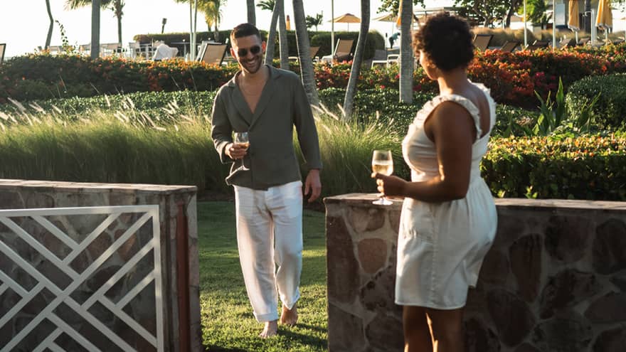 Our Nevis restaurants offer a variety of exclusive dining experiences, ideal for romantic evenings. A beach dinner is an unforgettable private dining experience set against the backdrop of the sunset over the Caribbean Sea, providing a one-of-a-kind intimate atmosphere. This private candlelit dinner with the sound of the waves in the background is perfect for a romantic night for two. For a more unique experience, Rum Tasting allows couples to sample local rum varieties and enjoy a private, interactive experience with our Resort’s expert mixologists.