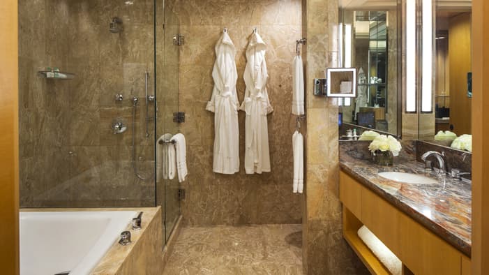 Opening up onto private landscaped terraces with dramatic park and city views, these luxurious and well-appointed Suites feature Italian marble bathrooms and spacious living and sleeping areas.