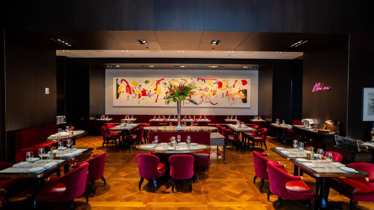 The Empire SuiteTaking up half of the 24th floor, our largest suite is where New York cool meets Four Seasons comfort. An art installation welcomes you in the entryway, the dining area is large enough to hold catered dinners for ten, mid-century modern furniture is arranged around a gas fireplace a private media room beckons sports games or family movie nights. The Empire Suite truly has it all.