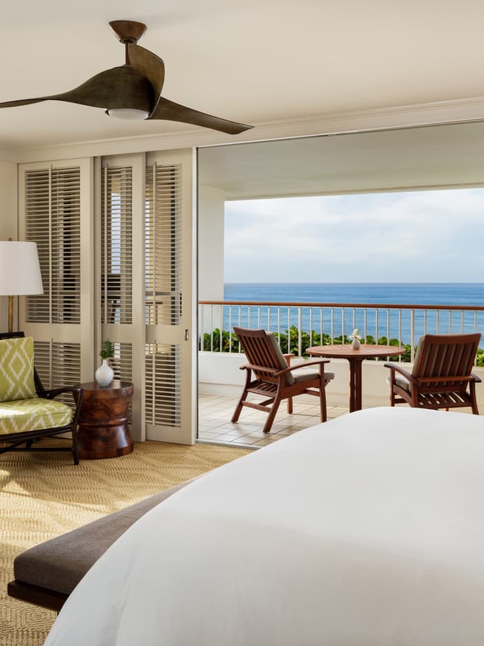 These upper-floor corner rooms let you enjoy incredible views from two private balconies; or, open up the extra-wide, sliding-glass doors as you relax on your customized Four Seasons Bed as the gentle sound of ocean waves lulls you to sleep.
