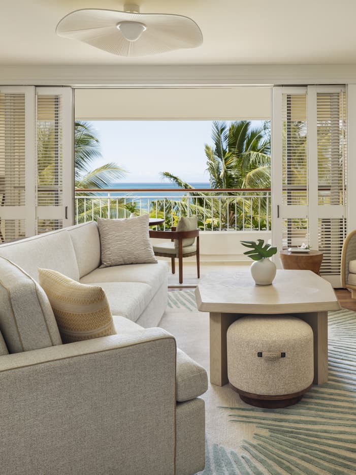 Enjoy 360-degree ocean views from your private lanai and spacious interiors. Hawaiian décor complements the views, with modern amenities inspired by traditional design. You’ll enjoy access to the Club Lounge with this suite.