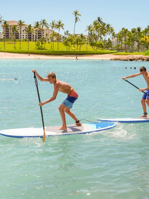 Stand-up paddleboard in Ko Olina's turquoise lagoon.