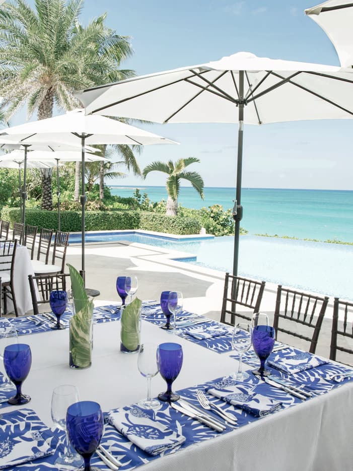 Dinner With a ViewSit down for an intimate meal on one of The Bahamas’ most beautiful beaches, or join your guests beneath a covered terrace surrounded by verdant tropical greenery next to our picturesque Versailles pool.