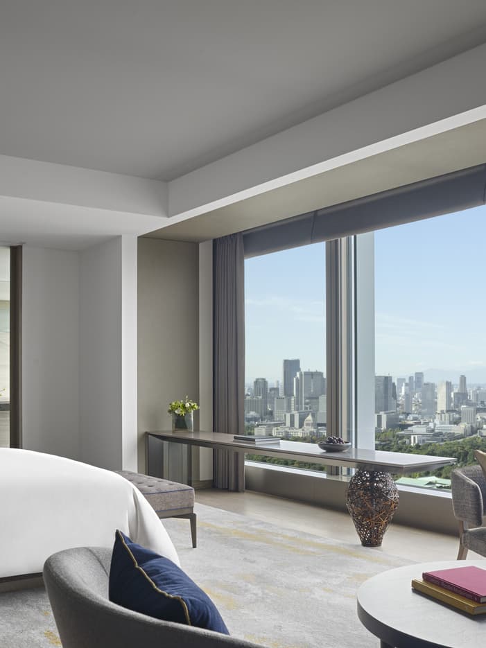Wake up to gorgeous vistas of the Imperial Palace Gardens, inviting you to linger just a little longer. With an innovative open-plan layout, these suites are tailored for intimacy, from sharing breakfast in-suite to raising a toast to Tokyo's after-dark glamour.