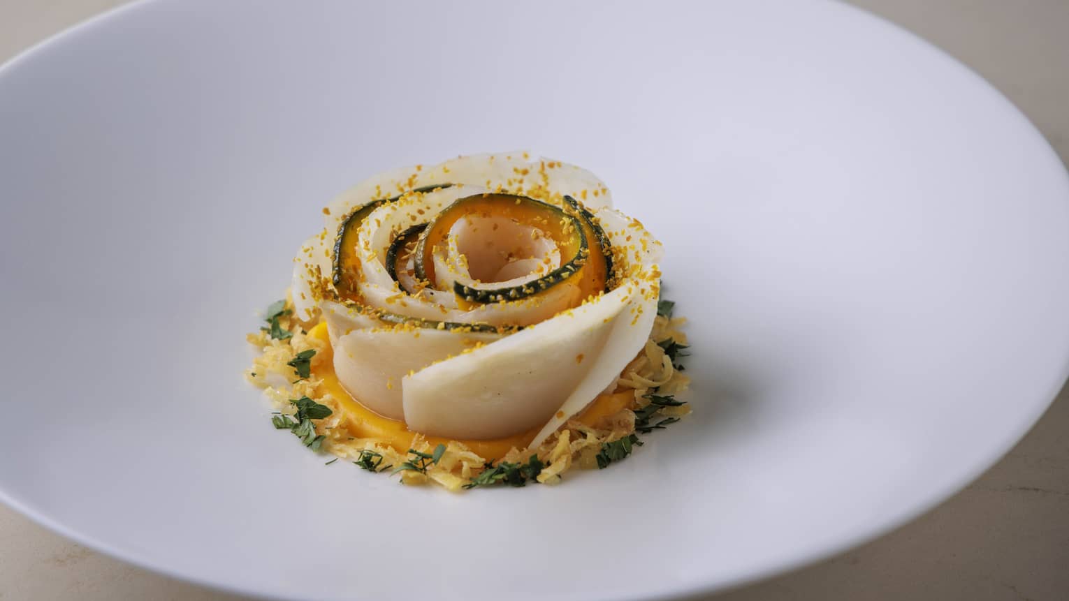 Additionally, creative desserts with an artistic flair are intricately crafted and presented. The beverage program opens another door into Japan with locally produced wines and bottled water, as well as old-world vintages and new-world discoveries.