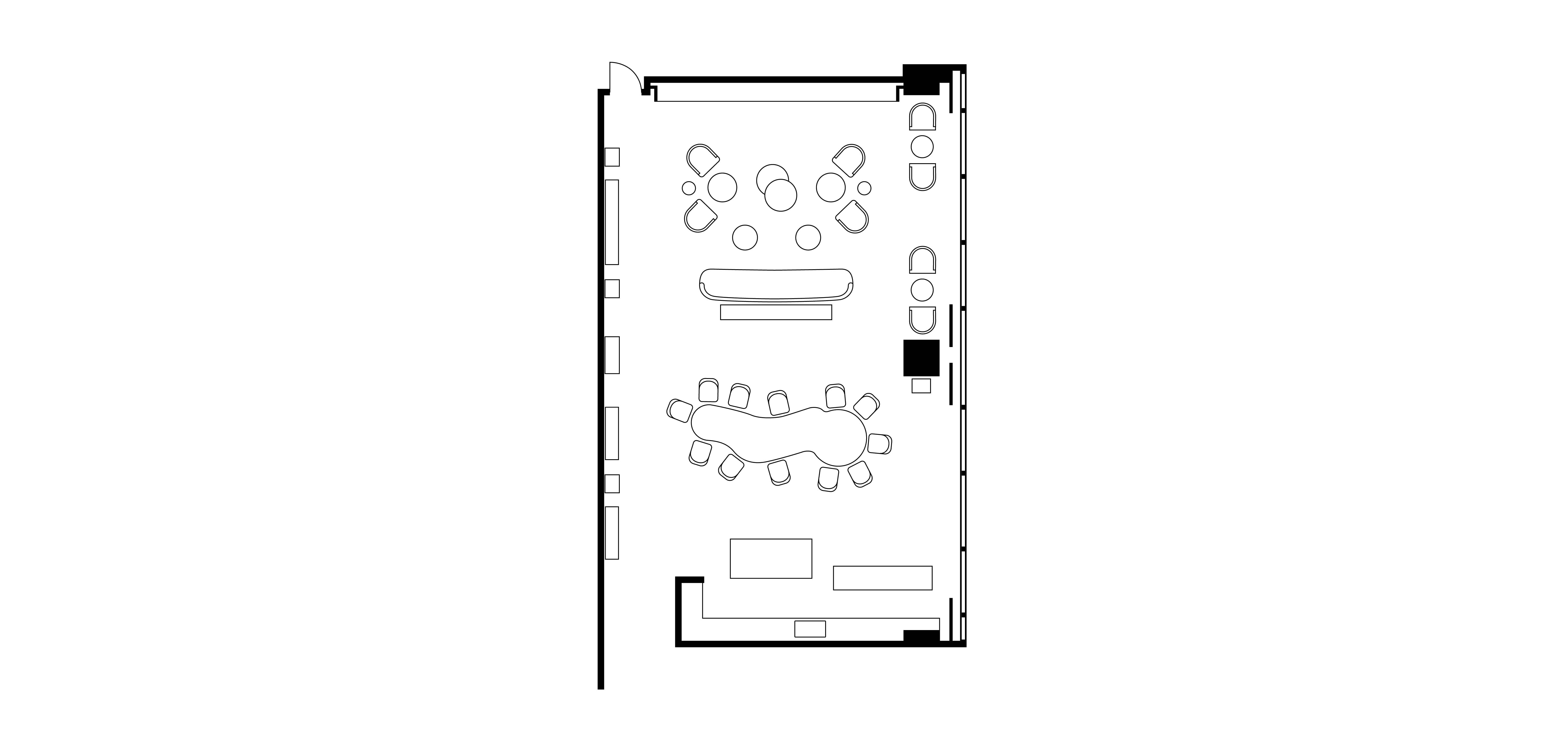 The Social Room is a premium venue for exclusive business and social gatherings. Incorporating a dining room, library and kitchen, the room’s flexible layout allows for seamless transitions to accommodate a range of exclusive events, including high-level meetings, chef’s tasting dinners and cultural salons. With abundant windows and a location on the 39th floor, the inviting space is awash in natural light and boasts spectacular views of the Imperial Palace and the Tokyo cityscape.
