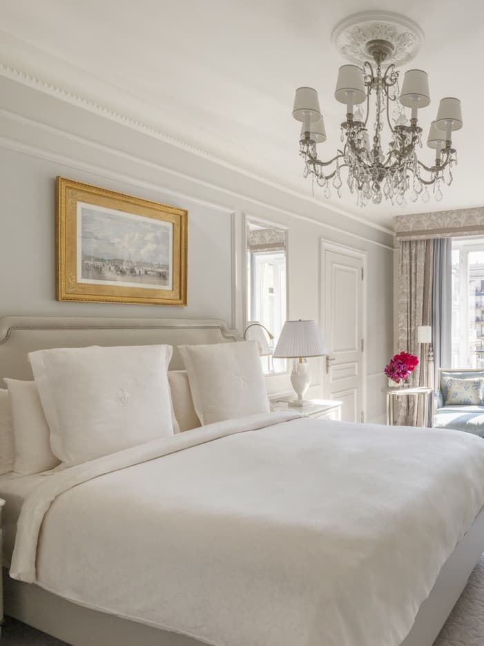 As the largest standard guest rooms in Paris, you’ll enjoy the airy, gracefully appointed feel of the Deluxe Rooms, boasting crystal chandeliers and deep soaking tubs.