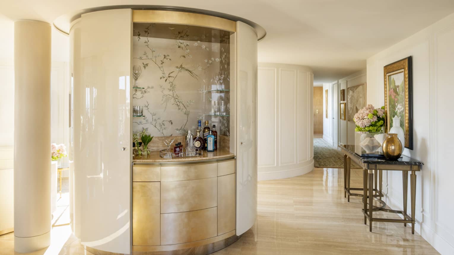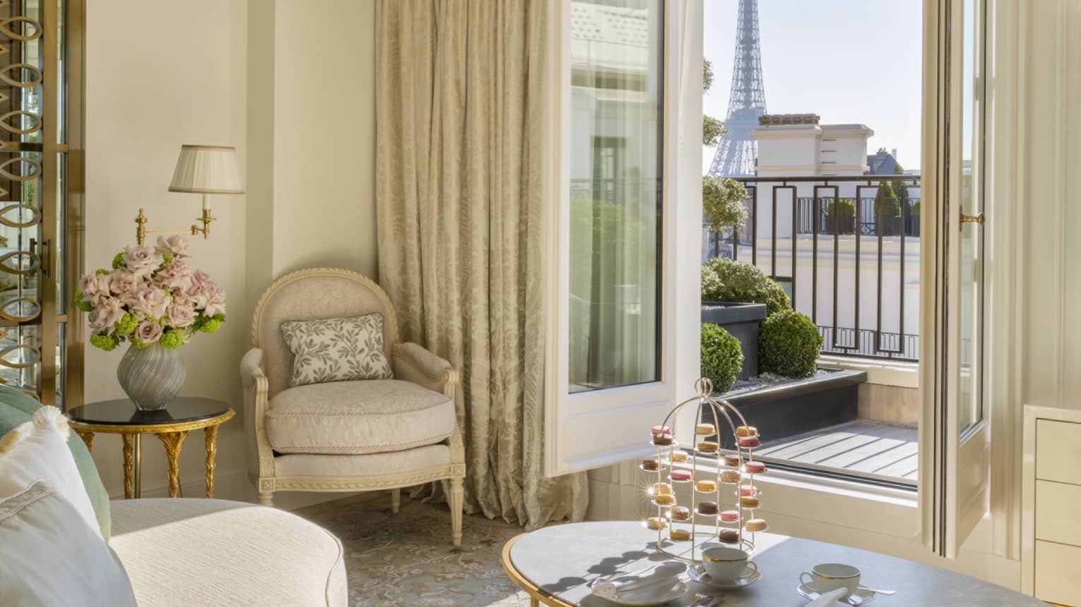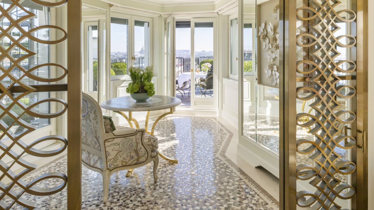 Exclusive AmenitiesBaccarat Crystal glassware, a plasma-screen television hidden behind a black mirror, a bookcase stocked with intriguing antique books, a refrigerated private bar and window coverings operated by remote control: These are just a few of the ways this suite elevates your Paris stay.