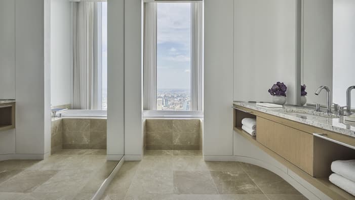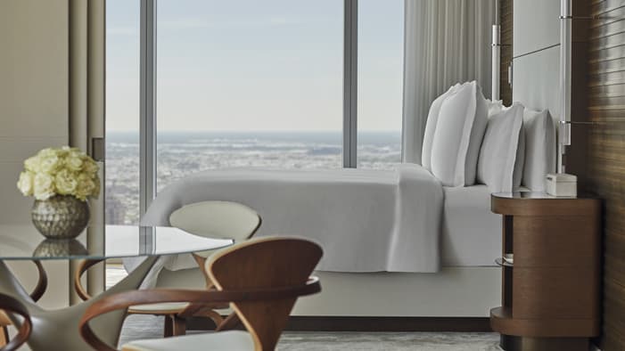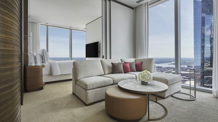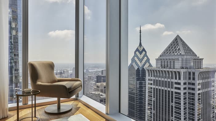 Discover unparalleled luxury and sophistication at Four Seasons Hotel Philadelphia. Located in the heart of Center City atop the city’s tallest tower, our accommodations redefine urban elegance. From sleek suites with panoramic views of the city’s historical landmarks, to stylish guest rooms outfitted with bespoke furniture, each space offers a haven of comfort and refinement, creating an unforgettable stay in the City of Brotherly Love.