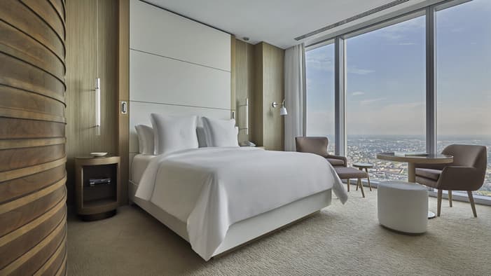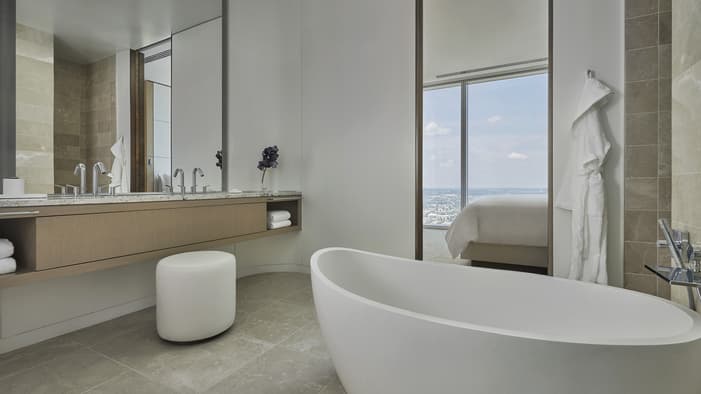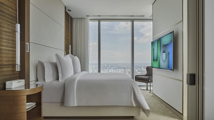 Embark on a journey above the clouds – to the top of Philadelphia’s tallest tower, the Comcast Technology Center. Designed by Foster + Partners, the Hotel reflects the people and landscape that shape this iconic American city. As a leader in energy and environmental design, the building earned double LEED Platinum certification, the highest-level certification for an environmentally friendly building. Sleek yet sumptuous, the design of each guest room offers floor-to-ceiling windows, bespoke furniture, and state-of-the-art technology with 219 accommodations, including 39 suites.