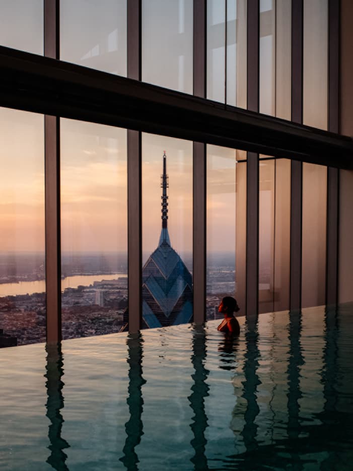 Take Philly sightseeing to new heights from our 57th-floor pool, and marvel at iconic landmarks, both old and new.