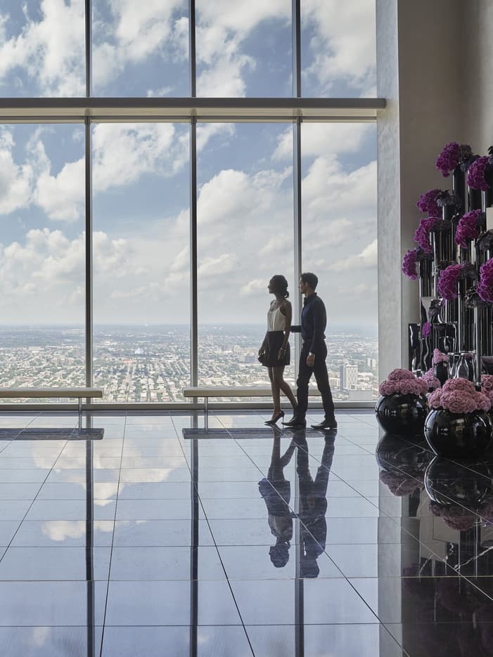 Watch the sun rise through your room’s floor-to-ceiling windows, then ease into the day over a champagne breakfast for two.