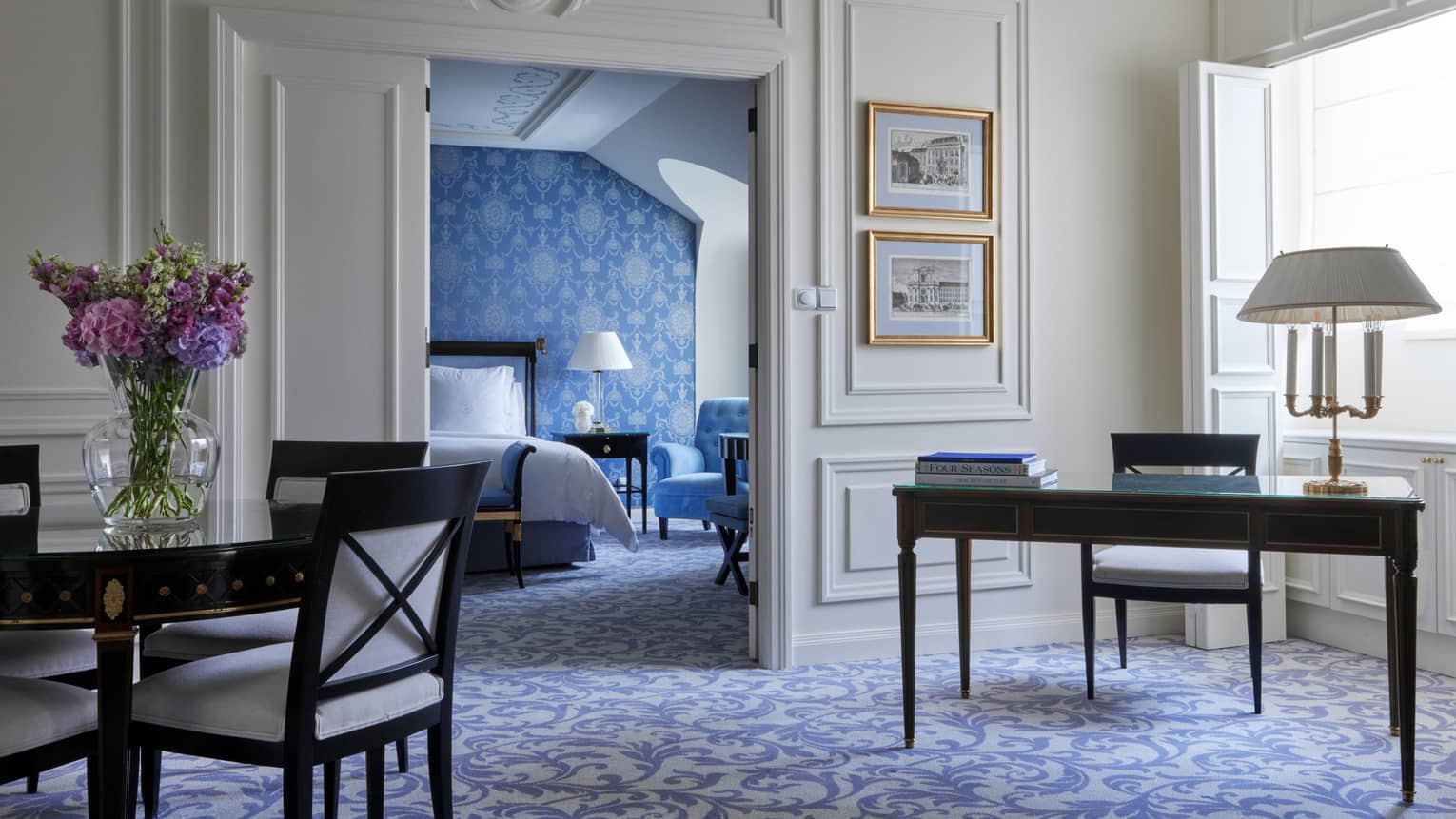 A regal blue colour scheme fills these spacious suites, with a separate residential-style living room that’s ideal for entertaining, hosting a meeting or simply relaxing.