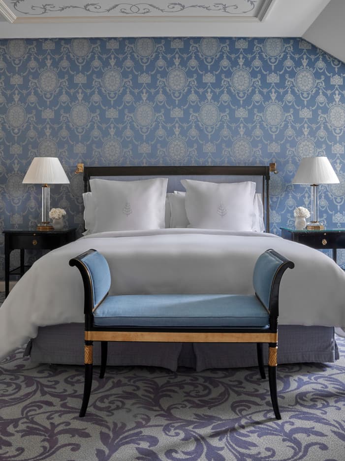 Neo-Renaissance furnishing design in tones of blue, reflecting the history of the building