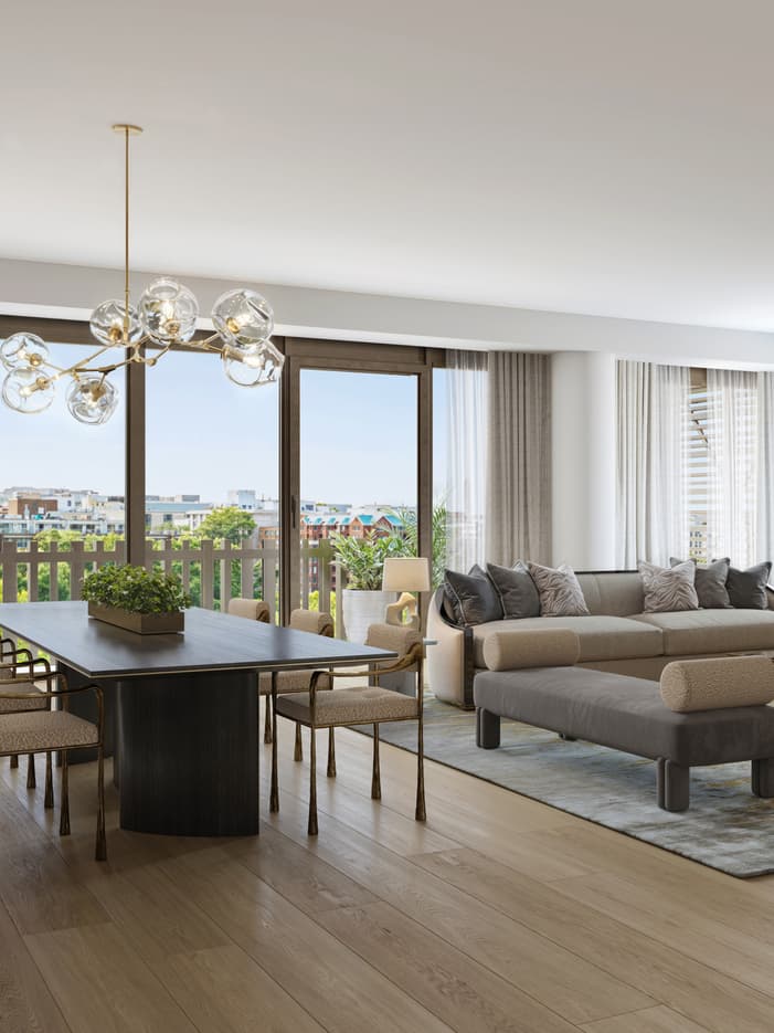 Spread out in style in our largest residence - framed by floor-to-ceiling views of the city skyline, this home away from home features two private balconies and a dining room that seats six.