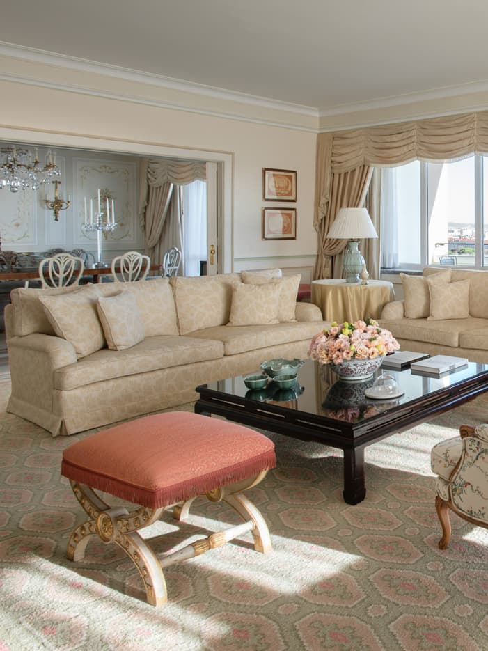 Uma entrada majestosa em mármore convida a entrar nesta suite no topo do último andar, cujas salas de estar e de jantar foram criadas a pensar no lazer; um quarto tranquilo oferece vistas deslumbrantes para o Castelo de São Jorge e para a Basílica da Estrela.