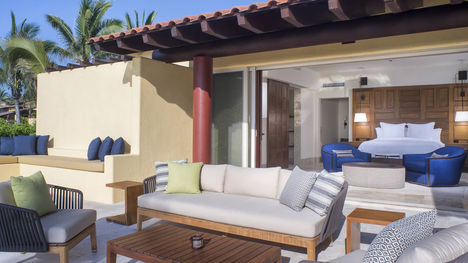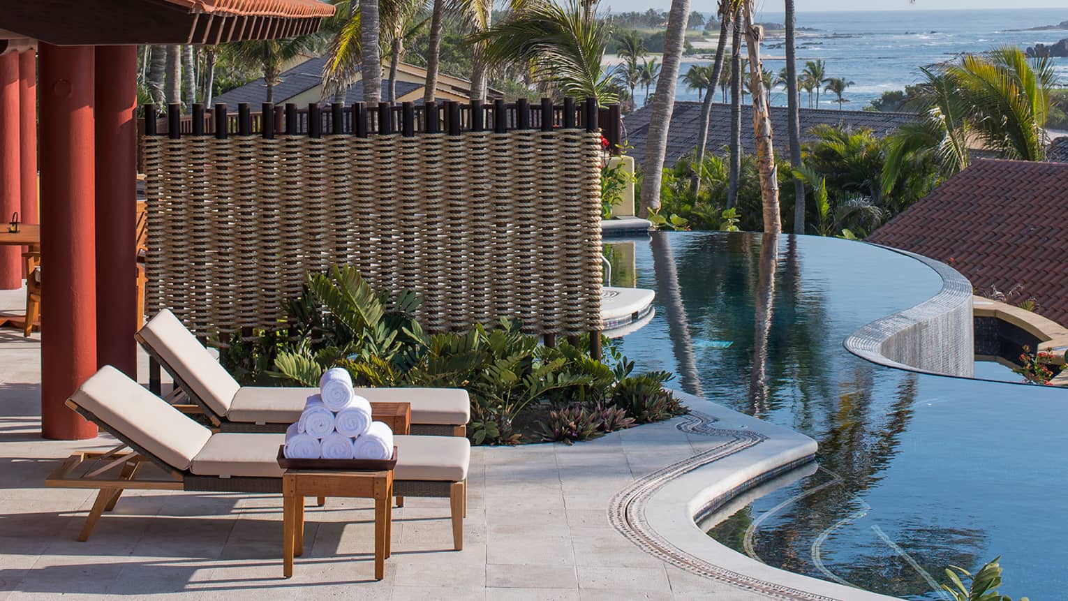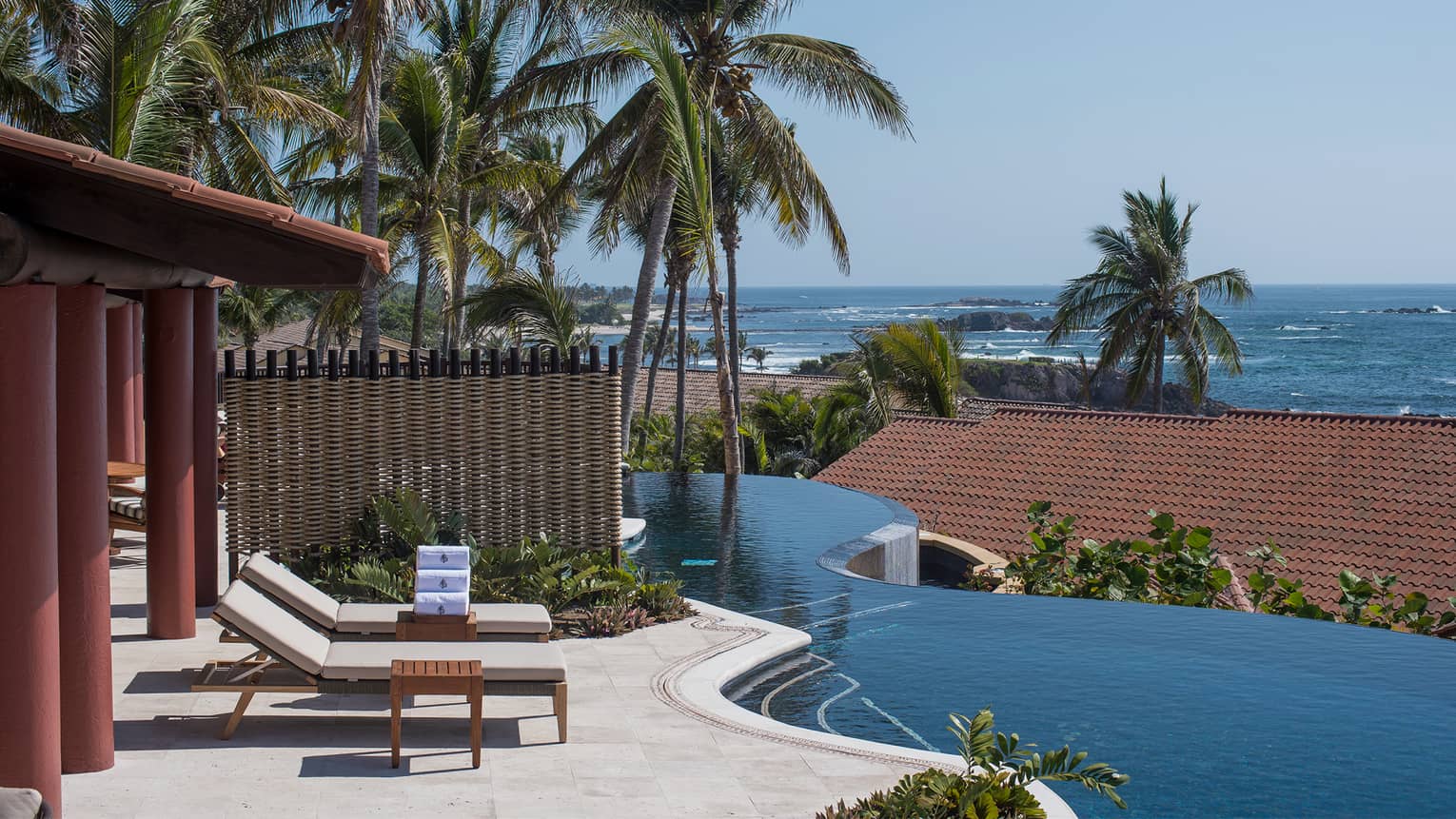 OUTDOOR LIVING SPACESThe expansive outdoor terrace frames a private infinity pool and provides endless ocean views. Day beds and sun loungers are ideal for relaxing beneath the Punta Mita sun.