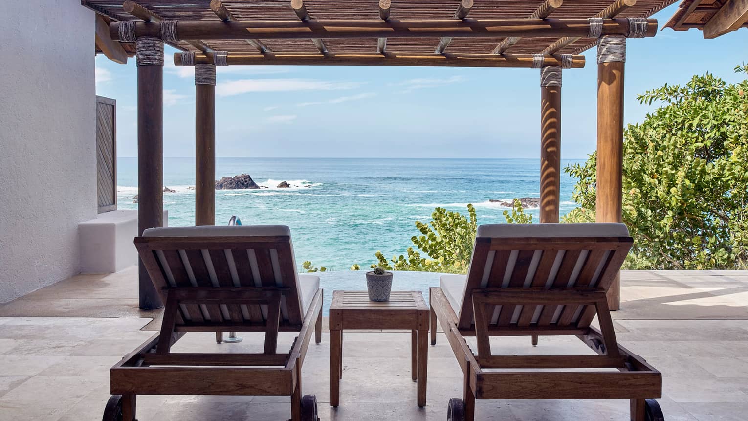 Private terrace with plunge pool boasting breathtaking views of white-sand beaches, the Pacific Ocean, nearby natural islands and spectacular sunsets