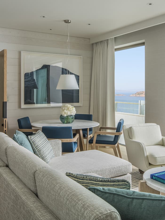 Этот светлый и просторный люкс с отдельной гостиной и спальней порадует вас роскошным современным декором. Закажите завтрак в номер и насладитесь трапезой на балконе с умопомрачительными видами на Эгейское море.