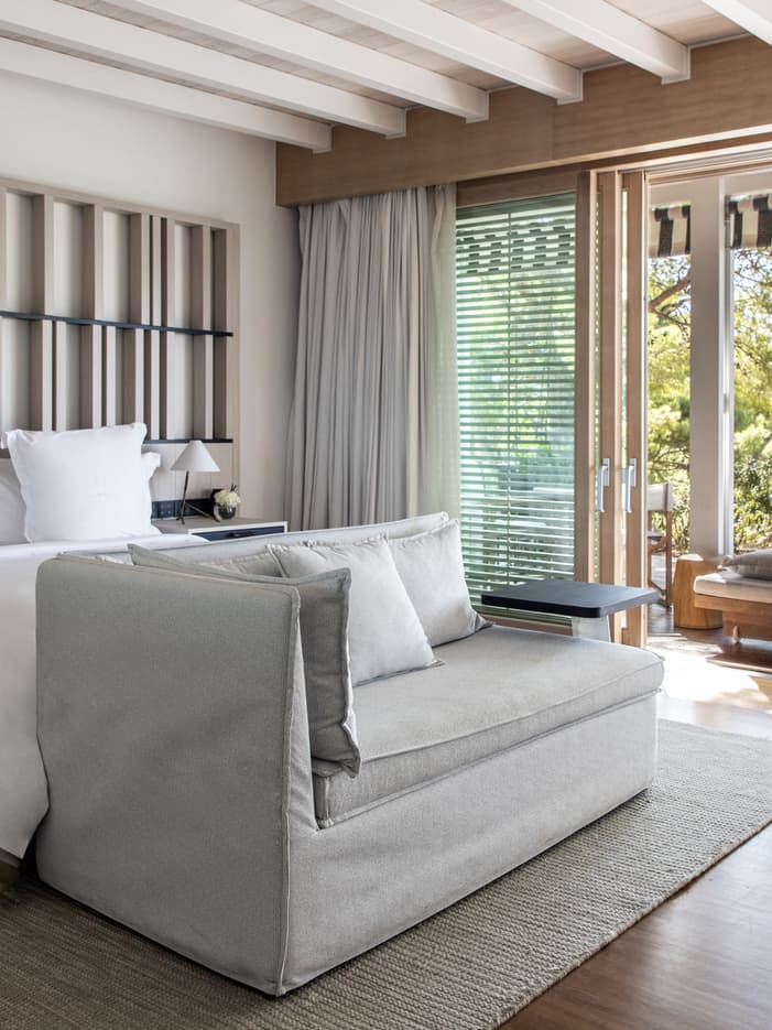 В расположенном на побережье корпусе Garden Bungalow, надежно скрытом за деревьями от посторонних глаз, современные интерьеры гармонично сочетаются с элементами дизайна архитектурного комплекса Astir Palace 1960-х годов. Открытые террасы бунгало выходят прямо в сад, где можно приятно расслабиться и неспешно насладиться природными красотами Ривьеры.