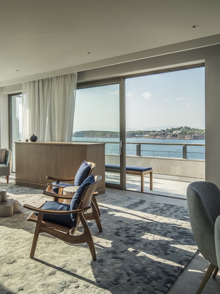 Преимущества фирменного люксаЗабронировав один из наших фирменных люксов, вы по достоинству оцените эксклюзивные удобства и уникальный сервис, в том числе услуги персонального батлера, который организует для вас фантастический отдых на побережье Афинской Ривьеры.
