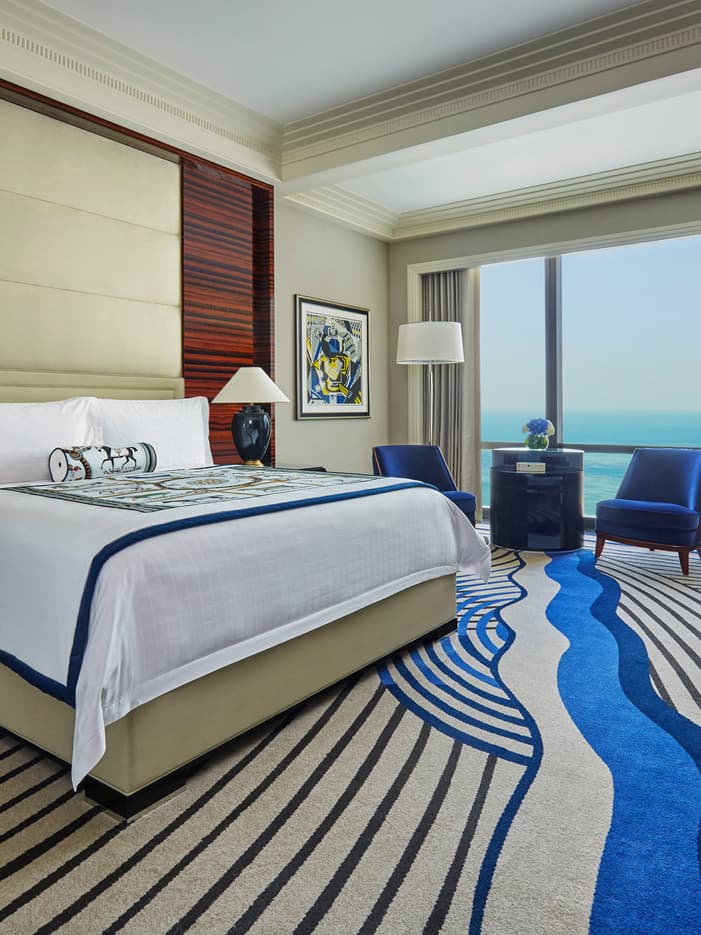 Просторный номер Deluxe с отдельной рабочей зоной, из окон которого открываются частичные виды на Персидский залив, идеально подходит для опытных путешественников.