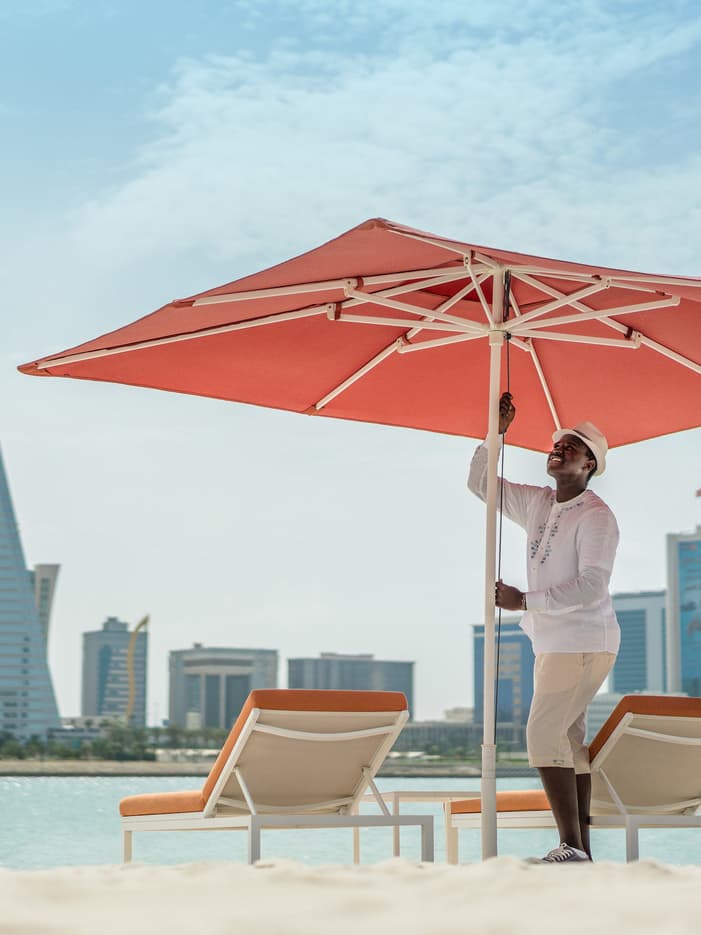 Жизнь на островеНасладитесь панорамными видами на Персидский залив с самого престижного пляжа в Бахрейне.