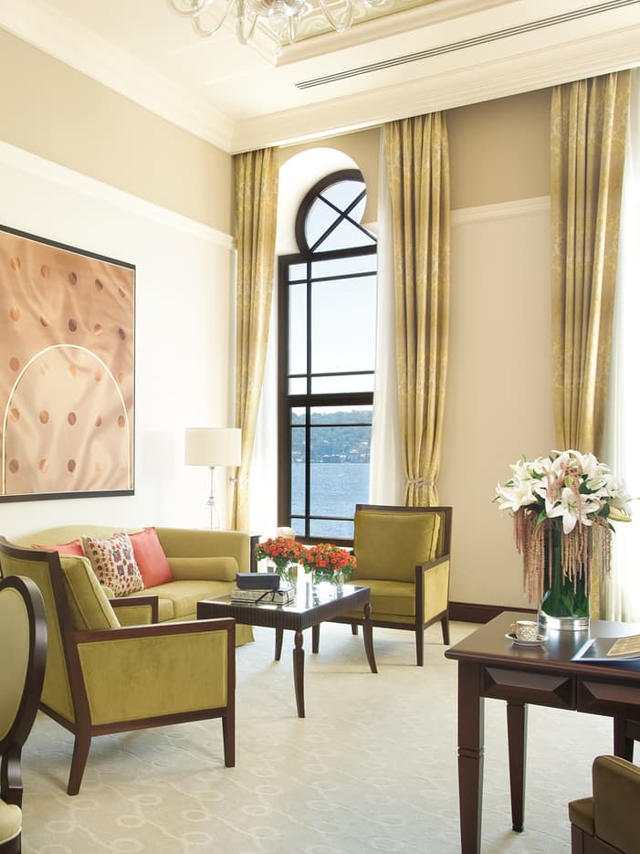 Выберите один из двух просторных люксов с панорамными видами на Босфор. Отличительной особенностью люкса, расположенного над холлом отеля, является спальня в стиле лофт и отдельная гостиная, а люкса на втором этаже — огромные эркерные окна.