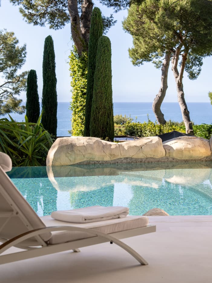 Наши великолепные люксы с частными бассейнами в окружении пышной растительности стирают границы между отдыхом в помещении и на свежем воздухе. От просторных террас под сенью алеппских сосен вас отделяют только прозрачные раздвижные двери, что позволяет сразу же после неторопливой трапезы под открытым небом освежиться в бассейне, а затем вздремнуть на кровати «King Size».