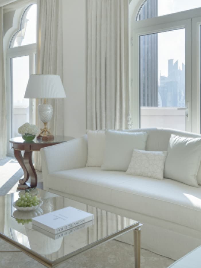 Осмотрите Доху во всей ее красе, поселившись в двухуровневом пентхаусе с панорамными видами на город и на море. Роскошная гостиная и столовая выходят на просторную террасу — где можно приятно расслабиться на свежем воздухе. На верхнем этаже расположены две уединенные спальни, достойные королевских особ.