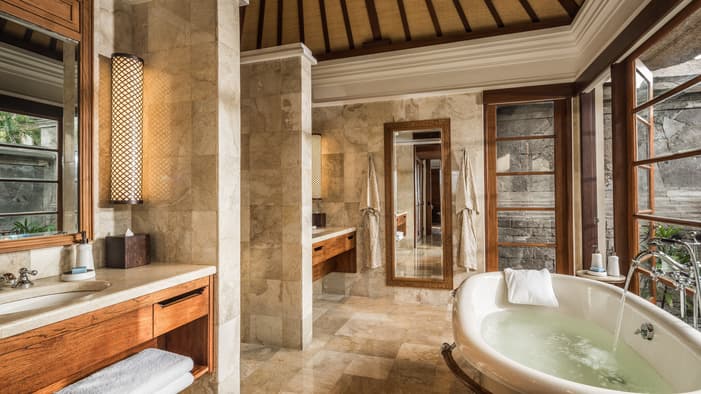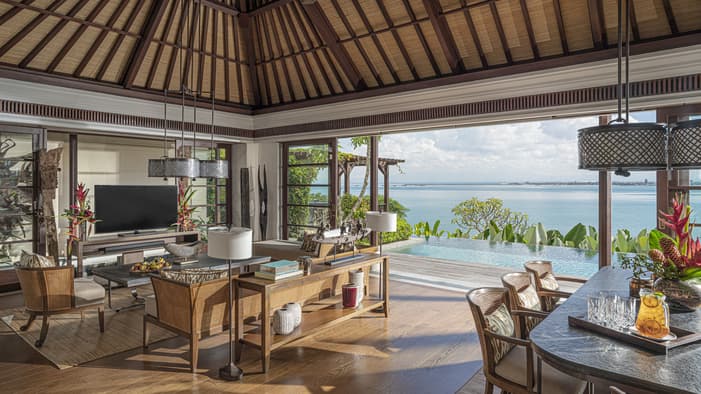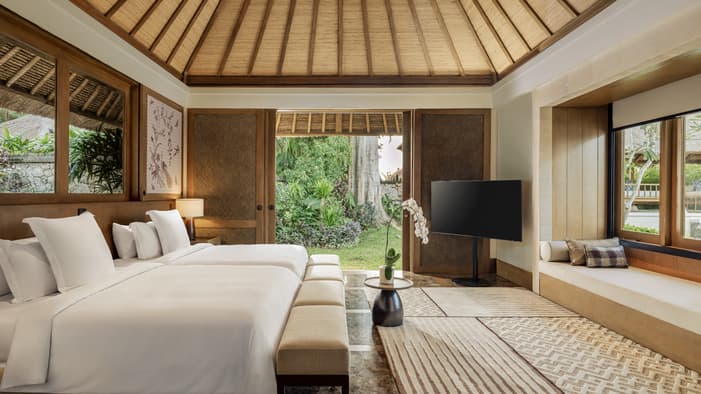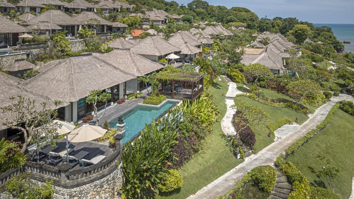 В соответствии с канонами традиционной балийской архитектуры, все 147 вилл курорта представляют собой уединенные павильоны с соломенной крышей и отгорожены от внешнего мира каменной стеной.